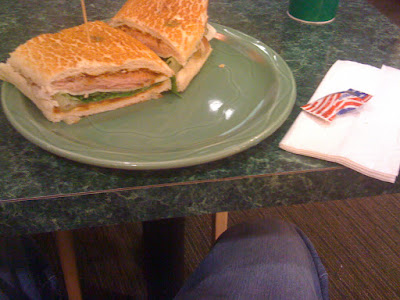 So there are a few sandwich makers here. This place has numerous sandwich makers, most of who are average. The two hipster dudes who are average, the two hipster girls and the asian girl are average, the owner/old guy who I have never got a sandwich from and then there is the cute skinny girl who also happens to be the best sandwich maker. She made this one. Funny side story: Having frequented the Toy Boat often, I have a certain rapport with THE Toy Boat Girl. My buddy Nate and I formed an elaborate scheme for me to introduce him to her after which he would subsequently ask her out. The introduction worked well but Nate (who fancies himself quite the lady's man) got I believe 2.3 syllables out before she shot him down.
